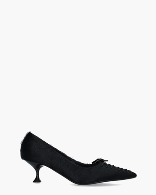 Gedurfd en stijlvol. De Lola Cruz Navari 072Z90BK pumps zijn uitgevoerd in zwart ponyhair dat je look meteen kracht geeft. De spitse leest en de elegante hak van 5, 5 cm zorgen voor een vrouwelijke uitstraling. Het vaste voetbed en de leren voering bieden dagelijks comfort, terwijl het bijzondere veterdetail op de neus de schoen uniek maakt. Perfect onder een rechte jeans met blazer of onder een little black dress. Kleur: zwart. (Negro)