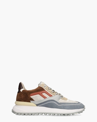 Kleurrijk, krachtig en karaktervol. Deze Floris Van Bommel Noppi 29.53/SFM-10139-50-04 herensneaker springt eruit dankzij de mix van groen, bordeauxrood, wit, zwart, lichtgrijs, beige en bruin. Suède, leer en mesh geven de schoen een rijke gelaagdheid, terwijl de oversized F aan de zijkant voor een moderne twist zorgt. Binnenin ervaar je comfort door de lederen voering en het uitneembare voetbed. De gebroken witte rubberen EVA-zool met bruine en zwarte noppen creëert een sportieve basis. Branding op hiel en tong, tweekleurige veters, metalen eyelets, subtiele stiksels en een donkergrijze rubberen stabilizer met FVB-logo ronden het geheel af. De leest heeft een normale G½-wijdte. Draag deze sneakers met een tapered chino en polo voor een casual uitstraling of kies voor een loose-fit jeans en sweatshirt voor een nonchalante look. Kleur: multi. (Green)