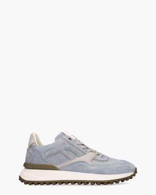 Deze sneakers voor heren Noppi 38.09/SFM-10223-42-02 combineren vakmanschap met een moderne look. Handgemaakt van suède en leer in lichtblauw en lichtgrijs stralen ze kwaliteit en stijl uit. De lederen binnenkant bevat een uitneembaar voetbed voor extra comfort. De witte rubberen runningzool met bruine noppen zorgt voor een soepele tred. Details zoals het lichtgrijze lederen hielstuk met merklogo, het witte lederen logo-embleem op de tong en de oversized F aan de zijkant geven de sneakers een echte Floris Van Bommel-signatuur. Lichtgrijze veters, gunmetal eyelets en een bruine gespikkelde kunststof stabilizer met merkopdruk maken het design helemaal af. Dit model is tenslotte gemaakt op een normale G½-leest. Kleur: lichtblauw/grijs. (Light Blue) Schoenen van het merk Floris Van Bommel vallen over het algemeen iets ruimer uit.