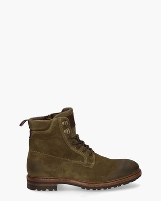 Veterboots voor heren Nox uit de collectie van Rapid Soul. Dit model heeft een bovenwerk van vintage geschuurd suède in een groene tint. De binnenkant is in leer met een uitneembaar voetbed uitgevoerd. De padded enkelkraag zorgt voor steun en comfort tijdens het lopen. Opvallende stiksels en bronskleurige haaksluiting en eyelets geven de laarzen een stoere look. Verder hebben de boots een bruin leren merklogo op de tong, een gestreept stoffen hiellusje met bruine leren afwerking en bruine ronde veters. Een gelaagde rubberen profielzool en een rits opzij maken de schoenen compleet. Kleur: groen. (Kaki)