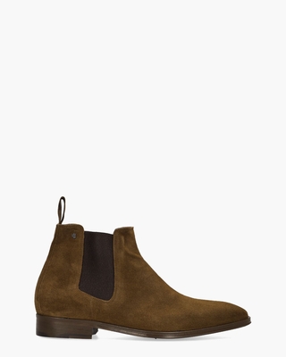 Deze Raffa 09.04/SBM-60014-23-01 Chelseaboots van Van Bommel zijn gemaakt van soepel cognackleurig suède. De elastische zijkanten zorgen voor een makkelijke instap, terwijl de leren zool met rubberen inzetstuk extra grip biedt. Binnenin vind je een uitneembaar voetbed, waardoor je deze boots ook met eigen steunzolen draagt of eenvoudig vervangt voor persoonlijk comfort. De afwerking is zoals je die van Van Bommel kent: verfijnd, degelijk en doordacht tot in het kleinste detail, zoals je ziet aan het mini koperen VB-logo opzij en de stoffen sierlus met branding bij de hiel. De Chelsea's zijn tot slot op een iets bredere H-leest gemaakt. Deze boots passen perfect onder een chino of pantalon met een cropped fit, voor een elegante maar nonchalante look. Combineer met een fijngebreide col