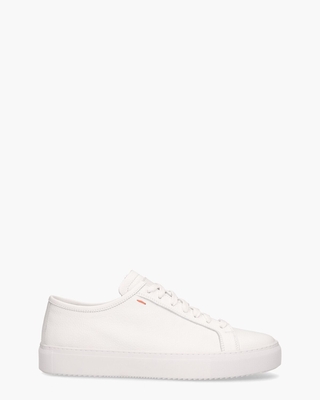 Low-top sneakers voor heren Remon uit de collectie van het merk Daniel Kenneth. Deze cleane trainers hebben een bovenzijde van wit gestructureerd leer. De binnenkant is ook in leer met een uitneembaar voetbed uitgevoerd. Het merklogo vind je op de tong en aan de zijkant is de sneaker afgewerkt met een oranje stiksel. Een witte rubberen gekartelde zool en matching witte veters maken dit model helemaal af. Kleur: wit. (White)