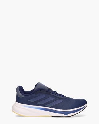 Ontdek de Response Super IF8598 hardloopschoenen uit de collectie van Adidas. Deze superlichte sportieve schoen heeft een bovenwerk van donkerblauw mesh, vervaardigd uit 20% gerecycled materiaal. Opvallend zijn de rubberen zijstrepen. De binnenkant is gevoerd met stof en beschikt over een uitneembaar voetbed. De padded enkelkraag en de colorful rubberen zogeheten Dreamstrike-zool zorgen voor extreem comfort. Blauwe veters, Adidas branding op de tong en achter op de hiel maken de sneakers compleet. Kleur: donkerblauw. (Dark Blue/ Preloved Ink/ Lucid Blue)