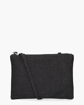 Stijlvolle clutch RLB7540 uit de collectie van het merk Di Lauro. Uitgevoerd in zwart textiel met een subtiele glinstering, is deze tas perfect voor feestelijke gelegenheden én stijlvolle alledaagse looks. De clutch sluit met een rits aan de bovenzijde en beschikt over een hoofdvak met ritsvakje waarin ouwe essentials overzichtelijk blijven opgeborgen. Dankzij de afneembare schouderband kun je de tas op verschillende manieren dragen: chique in de h&, nonchalant over de schouder of modern als crossbody. Afmetingen: hoogte: 16 cm breedte: 22 cm diepte: 2 cm. Kleur: zwart. (Black)