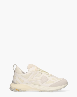 Deze herensneakers van Philippe Model Rocx RXLU-TP27 combineren een luxe uitstraling met een casual touch. De bovenzijde bestaat uit een mix van nylon mesh, leer en suède in off-white, wit en lichtgrijs. De lichtgrijze  suède badge met merkembleem benadrukt de exclusiviteit van het label. De binnenkant is uitgevoerd in synthetisch materiaal en voorzien van een uitneembaar lederen voetbed voor extra comfort. De circa 4 cm hoge rubberen Vibramzool in dezelfde tinten als het bovenwerk heeft een grof profiel en biedt daardoor een stevige basis. Gebroken witte/lichtgrijze veters, branding op de tong, lichtgrijze stoffen sierlusjes en een lichtgrijze hoogglans kunststof stabilizer maken de look compleet. Kleur: off-white/wit/lichtgrijs. (Blanc)