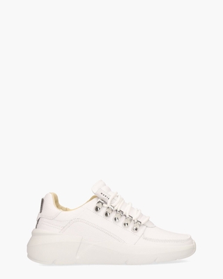 De Roque Roman 21057500-30X damessneakers van NUBIKK combineren stijl met comfort. Dit model heeft een bovenwerk van wit gestructureerd leer, met verfijnde details zoals transparante eyelets en een gewatteerde, doorgestikte tong. De sierstiksels maken het ontwerp extra luxe. De binnenzijde is volledig van leer en biedt, samen met het uitneembare voetbed, een uitstekend draagcomfort. Branding op de tong en een witte/grijze linnen hieltag voegen de kenmerkende NUBIKK-signatuur toe. De lichtgewicht EVA-zool van 5 cm zorgt voor een moderne, blown-up look, terwijl de ronde nylon veters perfect bij het ontwerp passen. Kleur: wit. (White)