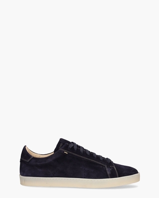 Low-top sneakers voor heren Rover uit de collectie van het merk Daniel Kenneth. Deze trainers hebben een bovenzijde van donkerblauw suède. De binnenkant is in leer met een uitneembaar voetbed uitgevoerd. Het merklogo vind je op de tong en aan de zijkant is de sneaker afgewerkt met een beige stiksel. Een off-white zool, perforaties opzij, witte stiksels en donkerblauwe veters maken dit model helemaal af. Kleur: donkerblauw. (Navy) ...