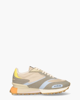 Laat jouw toffe stijl zien met de damessneakers Rush Starlight Groove 2.0 uit de collectie van Ghoud. Dit opvallende model combineert een upper van mesh, leer en glitterend suède in een prachtige mix van taupe, geel, aquablauw en beige. De binnenkant is bekleed met zachte badstof en voorzien van een uitneembaar leren voetbed voor optimaal comfort. De rubberen colorblock zool biedt niet alleen een modieuze uitstraling, maar is ook voorzien van noppen aan de onderkant voor uitstekende grip. Rubberen accenten, merklogo's op de tong en aan de zijkant, samen met een zachtgele stabilizer en off-white katoenen veters, geven deze sneakers de perfecte finishing touch. Kleur: beige/multi. (Beige/ Yellow)