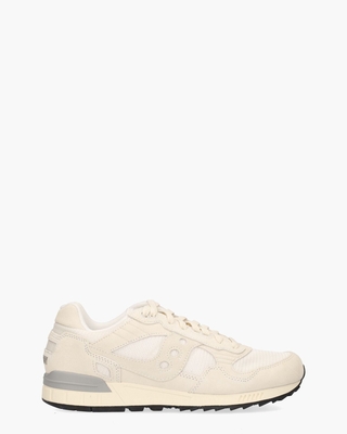 De Saucony Shadow 5000 S70665-53 voor heren is een stijlvolle sneaker met een retro vibe, gebaseerd op het originele ontwerp uit 1985. Deze klassieker van het Amerikaanse merk Saucony is uitgevoerd in een mix van nylon, suède en mesh in off-white. Merkdetails sieren zowel de tong als het hielstuk. De binnenkant is gemaakt van zachte stof en uitgerust met een dempende binnenzool en een schokabsorberende EVA-tussenzool. Het uitneembare voetbed verhoogt het draagcomfort. De gebroken witte/zwarte rubberen zool met profiel zorgt voor optimale grip, terwijl de lichtgrijze rubberen stabilizer voor een opvallend accent zorgt. Matching off-white katoenen veters en rubberen eyelets maken de look helemaal af. Kleur: off-white. (White)
