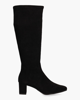 Dameslaarzen Sheila uit de collectie van Cypres. Deze stijlvolle hoge laarzen zijn vervaardigd met een suède bovenwerk in een tijdloze zwarte kleur. De binnenzijde is gevoerd met textiel en beschikt over een vast voetbed voor comfort. De laarzen hebben een hak van ongeveer 5 cm hoog. Ze sluiten met een rits die aan de binnenkant over de volledige lengte van de 38 cm hoge schacht loopt. De neus van de laars heeft een carré-vorm. Kleur: zwart.