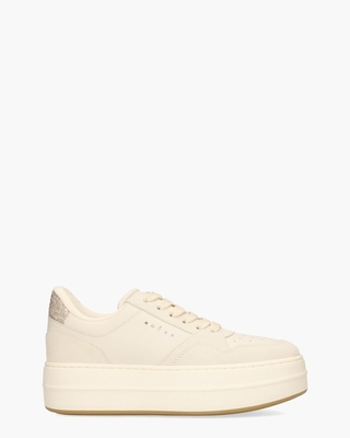De Hogan Skyscraper HXW6700FK80U3J0CAS sneakers brengen stijl en comfort samen in een opvallend platformdesign. Gemaakt van zacht roomwit leer stralen deze sneakers een tijdloze elegantie uit. Het hielstuk, afgewerkt met gouden glitters, voegt een vleugje glamour toe aan het geheel. Binnenin zorgen een stoffen voering en een uitneembaar memory foam-voetbed voor extra draagcomfort. Details zoals bijpassende roomwitte veters, subtiele sierstiksels, perforaties en glanzende zilveren Hogan-logo's maken de afwerking perfect.  De lichtgewicht EVA-platformzool van 6, 5 cm geeft niet alleen extra hoogte, maar voegt ook een coole 90's vibe toe aan je outfit.  Kleur: roomwit. (Ivory/ Gold)