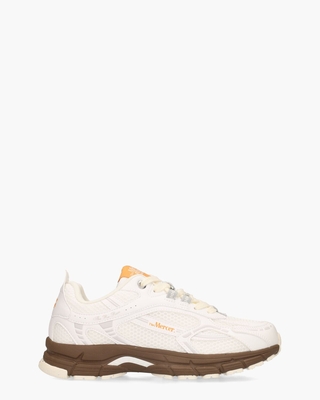 Retro vibes, future proof. The Re-Run Grape ME252002-157 damessneaker van Mercer Amsterdam mixt het beste van de jaren 90 met moderne materialen en een duurzame mindset. Het bovenwerk combineert gerecycled wit imitatieleer en ademend mesh, afgewerkt met accenten in grijs en zilvergrijs. Binnenin draagt gerecycled polyester bij aan het comfort, samen met het uitneembare voetbed. De ultralichte zool in donkerbruin, wit en off-white zorgt voor grip én een sportieve uitstraling. Details zoals oranje branding, zilveren logo-eyelets, lichtgrijze stoffen sierlusjes en gebroken witte katoenen veters maken de sneaker helemaal af. Kleur: wit/donkerbruin. (White/ Brown)