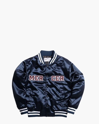 The Varsity Jacket ME0484204-953 uit de collectie van Mercer Amsterdam. Dit unisex oldskool model is gemaakt van satijnachtig materiaal in een donkerblauwe tint. Aan de binnenkant is het jack in polyester uitgevoerd. De jas sluit met drukkers en aan de zijkant heeft dit model twee steekzakken. Het jack is voorzien van een rubberen merklogo op de achterkant en premium chenille Mercer branding op de borst. De striped gebreide boorden maken de handgemaakte bomber af. Kleur: donkerblauw. (Navy) Onderhoud: • Binnenstebuiten wassen met soortgelijke kleuren op 30 graden. • Niet in de droogtrommel drogen. • Niet strijken.