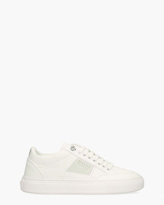 De Mason Garments Tia Sport Sarbini 9A damessneaker straalt minimalisme uit in een luxueuze vorm. Het cleane ontwerp in wit leer met ton-sur-ton details krijgt extra diepte door het lichtgrijze suède zijpaneel en de subtiele branding op de zijkant, tong en hiel. De sneaker heeft een stevige 4 cm hoge cupzool en een licht opgevulde kraag voor een comfortabele fit, terwijl de uitneembare binnenzool van leer bijdraagt aan het draagcomfort en ademend vermogen. De zilveren logo-veteroogjes geven een sportieve touch en onderstrepen het premium gevoel. Witte veters en branding op de achterkant van de zool geven de 'made in Italy' sneaker extra karakter. Deze sneaker past moeiteloos bij elke look: draag 'm casual onder een jeans of laat 'm clean shinen onder een wijde pantalon. Kleur: wit. (White)