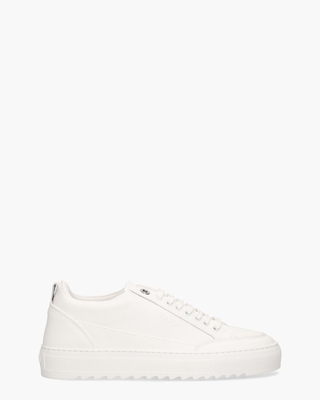 Witte sneakers Tia Squalo 1I voor heren uit de collectie van het Italiaanse merk Mason Garments. Dit handgemaakte model heeft een upper van zacht kalfsleer en is aan de binnenkant ook in soepel leer en mesh uitgevoerd en voorzien van een comfortabel en uitneembaar voetbed. De catchy zilveren eyelets en vetertips vallen meteen op en geven de sneakers een luxe uitstraling. Branding is zichtbaar op de tong, opzij en achter op de zool. Een wit leren hiellipje met een zilverkleurig MG-logo maakt de trainers compleet. De witte rubberen zool meet circa 3, 5 cm en is voorzien van een kartelprofiel. Tot slot is dit model sachetto gemaakt, dat wil zeggen dat het leer uit 1 stuk is gesneden waardoor de sneakers een superfijne pasvorm hebben. Kleur: wit. (White Archetipo)
