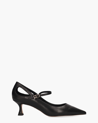 Pumps voor dames, model Tina 208Z13BK, afkomstig uit de collectie van het Spaanse merk Lola Cruz. Deze elegante pumps hebben een spitse neus en een bovenwerk van zwart leer met cut-outs opzij. De binnenkant is ook uitgevoerd in leer voor ultiem comfort. Met het gouden gespje kun je de pasvorm naar wens aanpassen. De hak heeft een hoogte van ongeveer 6 cm, wat zorgt voor een stijlvolle uitstraling. Kleur: zwart. (Negro)