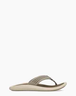 Slippers voor heren Ulele 10435-1013 uit de collectie van het Amerikaanse merk OluKai. Dit supercomfortabele ontwerp heeft een bovenwerk van synthetische stof met een gelaserde print. De waterbestendige microfiber voering en het zachte nylon teenstuk zorgen voor een ultra-comfortabele pasvorm. De EVA-middenzool met een zacht voetbed biedt een anatomische pasvorm voor comfort de hele dag door. Branding op de straps maakt de Hawaiiaanse geĆ nspireerde slides compleet. Kleur: grijs. (Clay/Mustang)