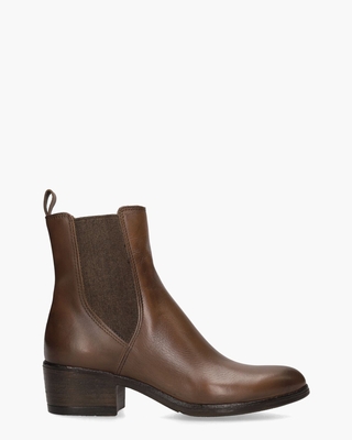 Deze stijlvolle Vanadi Chelseaboots, ontworpen door Gioia, bieden een perfecte combinatie van elegantie en comfort. Het donkerbruine gestructureerde leer geeft de laarsjes een chique uitstraling. De subtiel puntige leest zorgt voor een verfijnde look, terwijl het elastiek aan beide zijden van de circa 14 cm hoge schacht zorgt voor een gemakkelijke instap. Binnenin zijn de laarsjes voorzien van een leren binnenkant en een vast voetbed, wat extra comfort biedt. De hak van 5 cm voegt een subtiele hoogte toe zonder in te boeten aan draaggemak. Een lederen hiellus maakt het geheel af. Kleur: donkerbruin. (Castagna)