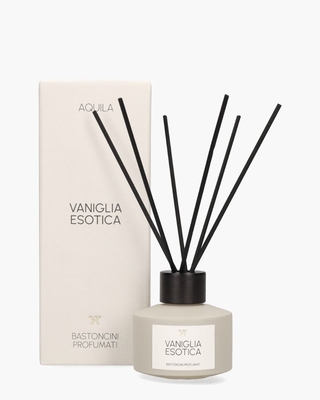 Voeg een vleugje rust toe aan je woonruimte met onze Aquila Vaniglia Esotica geurstokjes. Deze geurstokjes combineren een mix van vanille, ylang-ylang, roos, bergamot en musk om een kalmerende en verkwikkende ambiance te creëren. Perfect voor de woonkamer, slaapkamer of elke ruimte waar je een ontspannen sfeer wilt bevorderen. De geurstokjes verspreiden geleidelijk hun subtiele aroma, waardoor je huis continu gevuld wordt met een aangename geur die zowel opbeurend als ontspannend werkt. De stokjes zijn niet alleen functioneel, maar ook esthetisch aantrekkelijk. Elk 100 ml flesje is ontworpen met oog voor detail en schoonheid, waardoor ze een prachtige toevoeging zijn aan jouw interieurdecoratie.