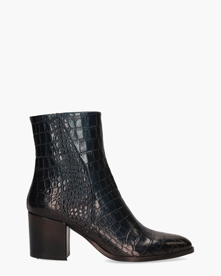 De Venla enkellaarzen voor dames uit de Gioia-collectie bieden een unieke combinatie van stijl en comfort. Gemaakt van leer met een opvallende petrolkleurige crocoprint, waarin zowel grove als fijne details zijn verwerkt, stralen deze booties eigentijdse elegantie uit. De volledig leergevoerde binnenkant en het vaste voetbed zorgen voor langdurig draagcomfort. Dankzij de ritssluiting aan de zijkant zijn de laarzen eenvoudig aan te trekken. De puntige leest en stevige blokhak van ongeveer 6, 5 cm geven het model een krachtige en verfijnde uitstraling. De schacht meet ongeveer 15 cm. Kleur: petrol. (Nevada)