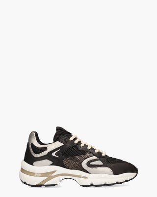 Statement-sneakers met een futuristische edge: deze VIA VAI Vesper Due 62215-05-900 damessneaker heeft een bovenwerk dat is opgebouwd uit een mix van textuurleer en technisch meshmateriaal in zwart, zilver en brons. De krachtige vormen worden extra benadrukt door de 3 tot 4, 5 cm hoge chunky zool met glanzende details. Aan de mesh binnenkant zorgt een zacht, uitneembaar voetbed voor optimaal comfort. Zowel op de hiel als de tong en zool vind je herkenbare VIA VAI-logo’s. Ronde gebroken witte/taupe veters maken de handgemaakte sneakers af. Draag de sneakers met een lange rok en oversized blazer. Kleur: zwart. (Nero)