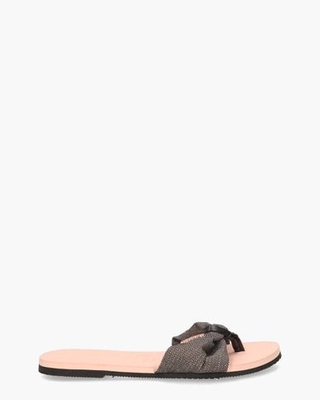 Teenslippers voor dames You Saint Tropez Shine van het merk Havaianas. Deze lichtgewicht slides zijn uitgevoerd in rubber in lichtroze en zwart. De straps zijn bekleed met een chic grijs/roze stofje voorzien van lurex en afgewerkt met een roségouden metallic Havaianas-logo. De tweekleurige rubberen zool heeft een schattig mini-hakje. Kleur: roze/zwart/grijs. (Ballet Rose) Havaianas werkt met dubbele maten: 36 = 35/36 38 = 37/38 40 = 39/40 42 = 41/42. De Braziliaanse maatvoering (als grootst vermeld in de slipper en op de doos) wordt hierbij aangehouden.