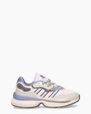 Coole sneakers voor dames Zentic GX0423 uit de collectie van Adidas. Deze sportshoe heeft een upper van stof, mesh en kunststof gedeeltelijk gemaakt van gerecycled materiaal. Tof is de lila afwerking. De binnenkant is in stof uitgevoerd. De chunky lichtgrijze rubberen zool geeft solide grip. Adidas branding op de tong en hielcap en grijze veters maken het geheel compleet. Kleur: grijs/lila. (Grey One/violet Tone/ Orbit violet) ...