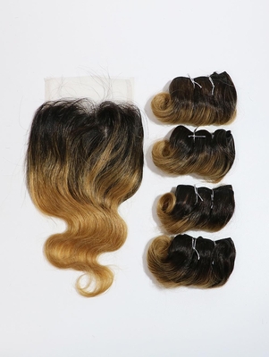 4Pcs Wavy Human Hair Weave With 4*4 Lace Closure