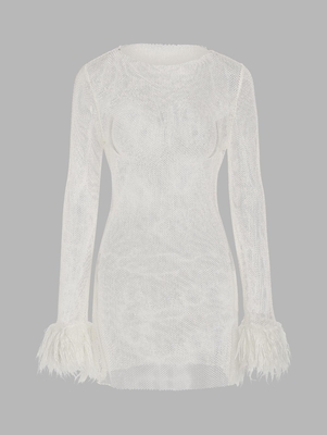 90s Metallic Fishnet See Thru Faux Fur Cuffs Bodycon Dress M White