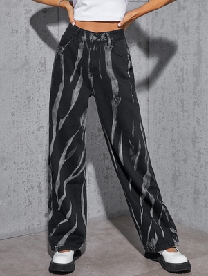 Zaful Looser & slouchier than a classic straight style, these high-waist jeans are fashioned with an all-over abstract patterning so you can feel great on so many levels. Style: Fashion