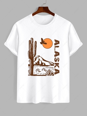Cotton Material Stretch: Slight Stretch Fit Type: Regular Fit Shirt Length: Regular Sleeves Length: Short Collar: Round Collar Pattern Type: Cactus, Letter Season: Summer Weight: 0.2300kg Package: 1 x T-shirt