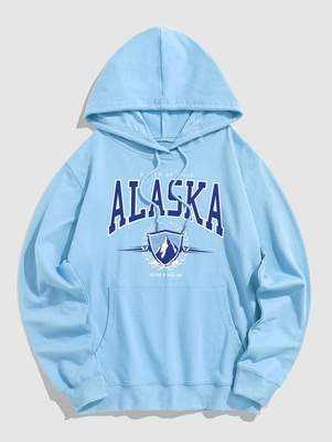ALASKA Letter Printed Kangaroo Pocket Hoodie 2xl Light Blue