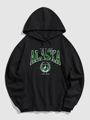 ALASKA Letter Printed Kangaroo Pocket Hoodie L Black