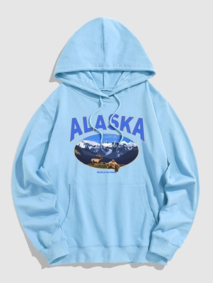 ALASKA Mountain Pattern Pullover Hoodie Xl Light Blue