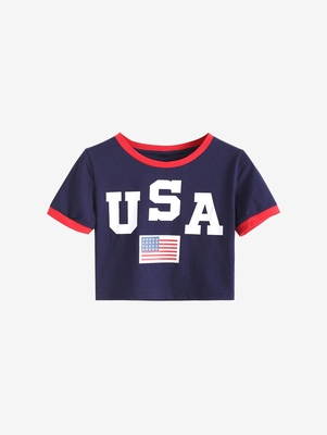 Zaful Perfect your casual-cool vibe in this boxy, cropped ringer T-shirt featuring contrast trims at the collar & cuffs, & an eye-catching American flag & USA graphics that add plenty of modern chics. Style: Fashion Occasions: Daily Shirt Length: Crop Top Collar: Round Collar Sleeves Length: