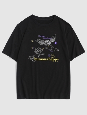 Zaful Style: Casual Material: Cotton Material Stretch: Slight Stretch Fit Type: Regular Fit Shirt Length: Regular Sleeves Length: Short Collar: Round Collar Pattern Type: Characters, Letter Season: Spring, Summer Weight: 0.2800kg Package: 1 x T-shirt