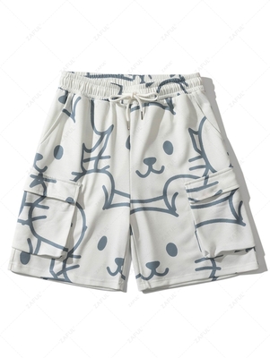 Animal Figure Multi-pocket Drawstring Shorts 2xl Warm White