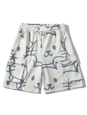 Animal Figure Multi-pocket Drawstring Shorts L Warm White
