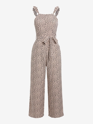 Zaful A romantic take on classic one-&-done style, this jumpsuit features a classic wide leg, a unique animal-spotted print, a self-tie matching belt, & ruffly shoulder straps. Occasion: Daily, Vacation Style: Cute Fit Type: Regular Length: Normal Collar-line: Straps Sleeves Length: Sleeveless M
