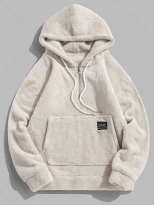 Applique Solid Color Faux Fur Half Zipper Drawstring Fluffy Hoodie 2xl