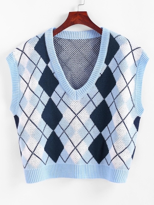 Zaful Knitted from a warming fabric, its sleeveless cut & ribbed trims are accompanied by stitched-on argyle patterns. Type: Vest/ Sleeveless Occasions: Daily Style: Cute Fit Type: Loose Length: Regular Collar: V-Collar Sleeves Length: Sleeveless