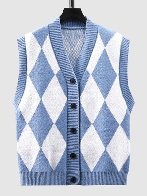 Zaful Type: Cardigans Style: Fashion Occasions: Daily Sleeves Length: Sleeveless Fit Type: Regular Fit Length: Regular Collar: V-Collar Pattern: Argyle Decoration: Button