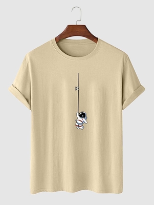 Astronaut Graphic Print Short Sleeve T Shirt L Light Coffee