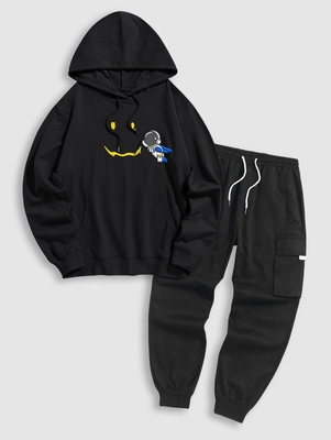 Zaful Type: Hoodie& Pants Set Style: Casual, Fashion, Streetwear Occasions: Daily Top Length: Regular Sleeves Length: Long Sleeves Bottom Length: Long Pants Waist Type: Mid Closure Type: Drawstring Pattern Type: Astronaut, Graphic, Smile Decoration: Adjustable Waist, Pocket
