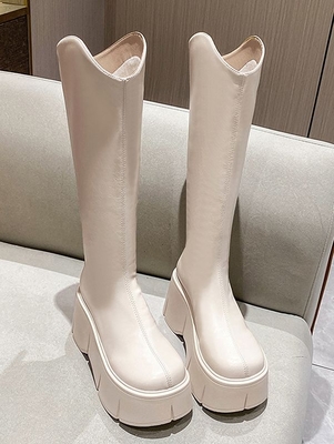 Knee-High Toe Shape: Round Toe Heel Type: Platform Closure Type: Zip Pattern Type: Solid Color Outsole