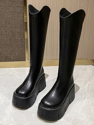 Knee-High Toe Shape: Round Toe Heel Type: Platform Closure Type: Zip Pattern Type: Solid Color Outsole