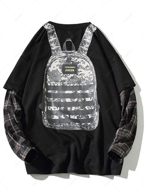 Zaful Opt for an everyday casual style with this sweatshirt, which adds a relaxing touch to your day-to-day outfits. Show off this design featuring backpack print & plaid sleeves by pairing it with trousers or jeans. Clothes Type: Sweatshirts Style: Casual Occasions: Daily Collar: Crew Collar Shi