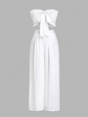 Material: Polyester Material Stretch: No Stretch Waist Type: High Closure Type: Elastic Waist Front Style: Flat Pattern Type: Solid Decoration: Bowknot, Ruffle