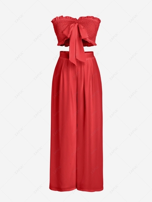 Bandeau Smocked Ruffle Bowknot Wide Leg Pants Set Xl Red