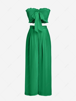 Bandeau Smocked Ruffle Bowknot Wide Leg Pants Set Xxl Deep Green
